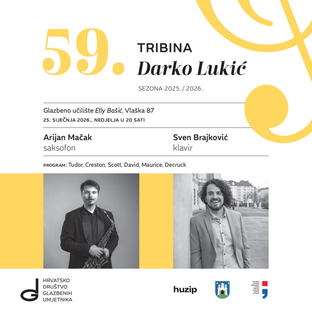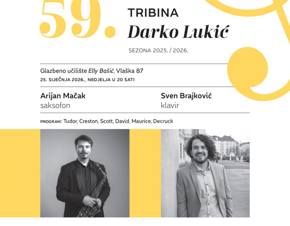 59. tribina “Darko Lukić” 25.1.2026. Arijan Mačak, saksofon – Sven Brajković, klavir